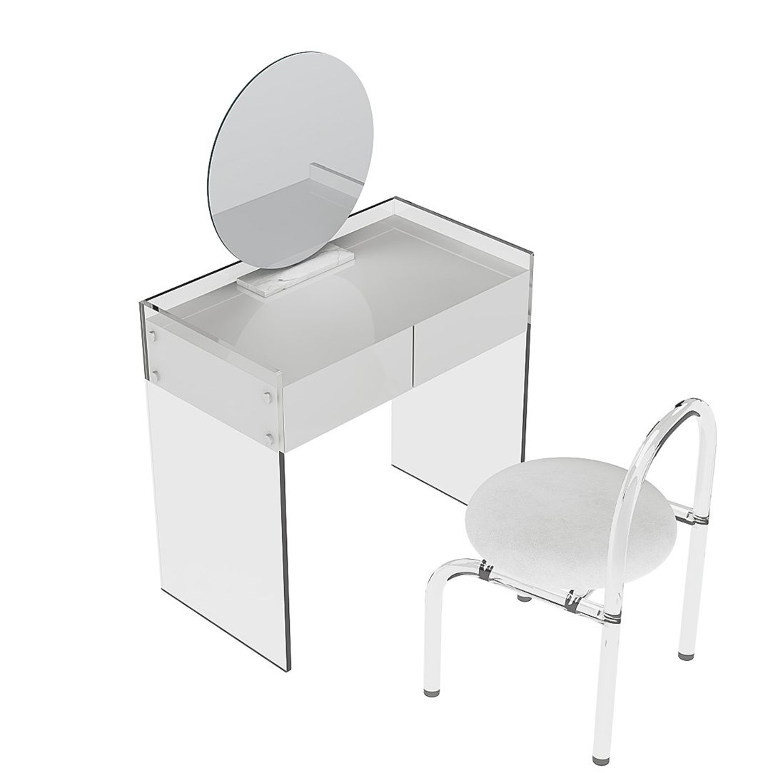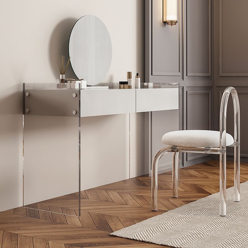 Glam Style Acrylic White Slate Table Top Transparent Base with 2 Drawer Dresser