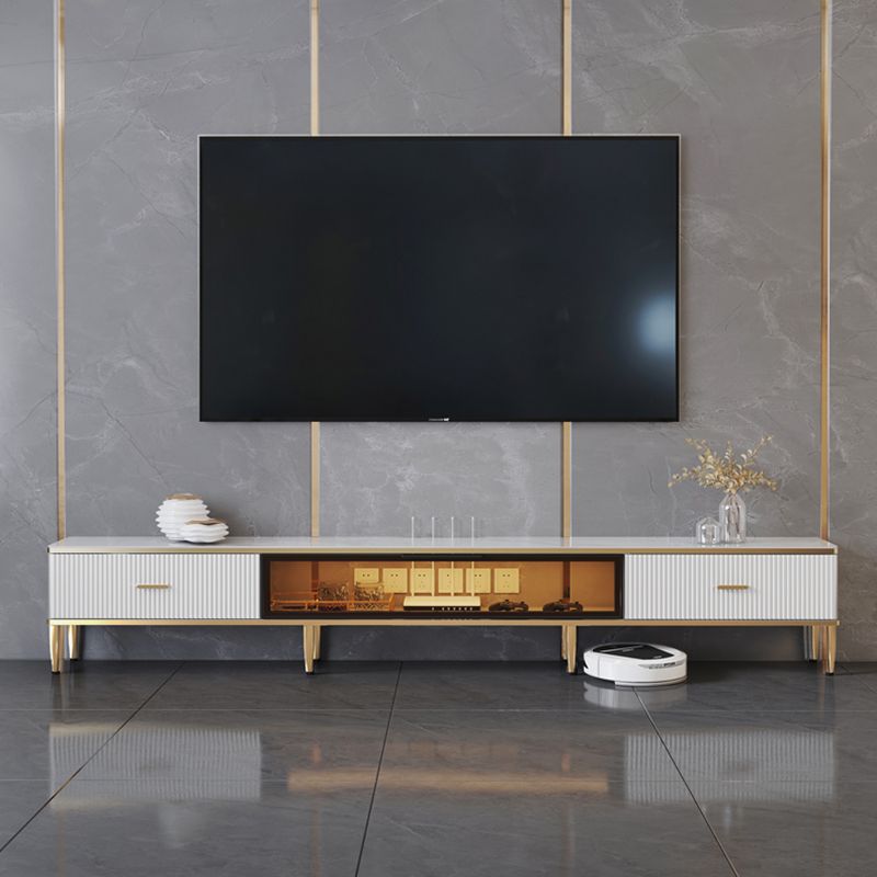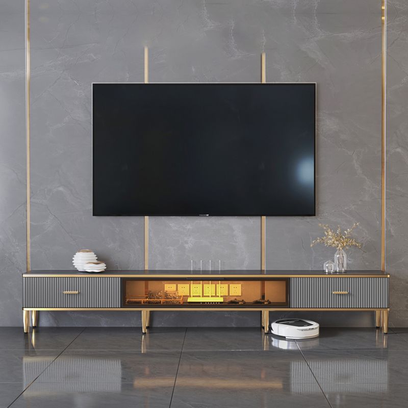 Glam Style Stone TV Cabinet Enclosed Storage TV Stand with Glass Door