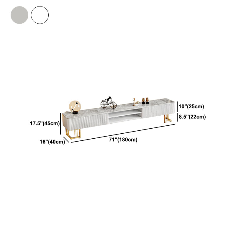 Glam Style Stone TV Stand Open Storage TV Console with 2 Drawers