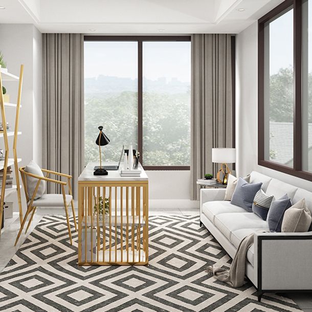 Glam Style Writing Desk Rectangular Marble Office Desk with Metal Base