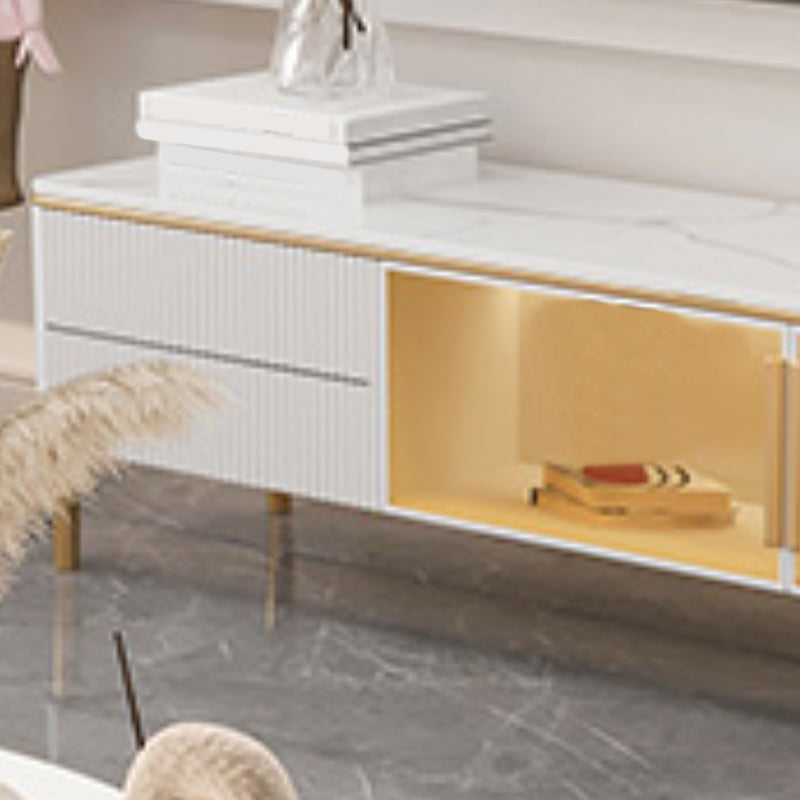 Glam TV Media Console Enclosed Storage Stone Stand Console for Living Room