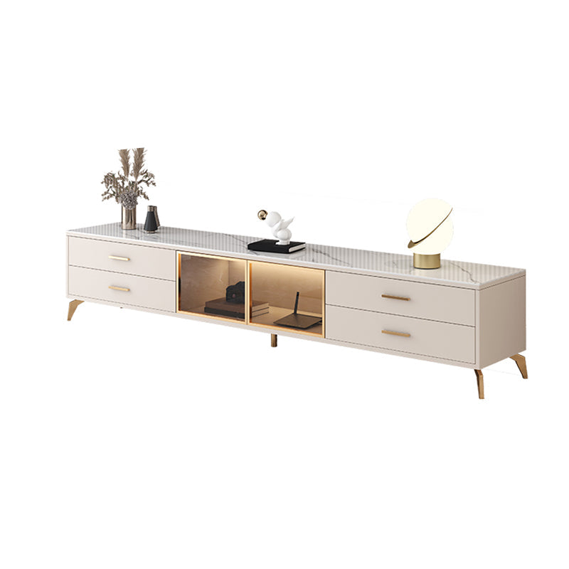 Glam TV Media Console Glass Enclosed Storage Stand Console for Living Room