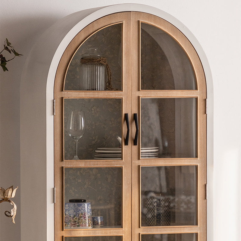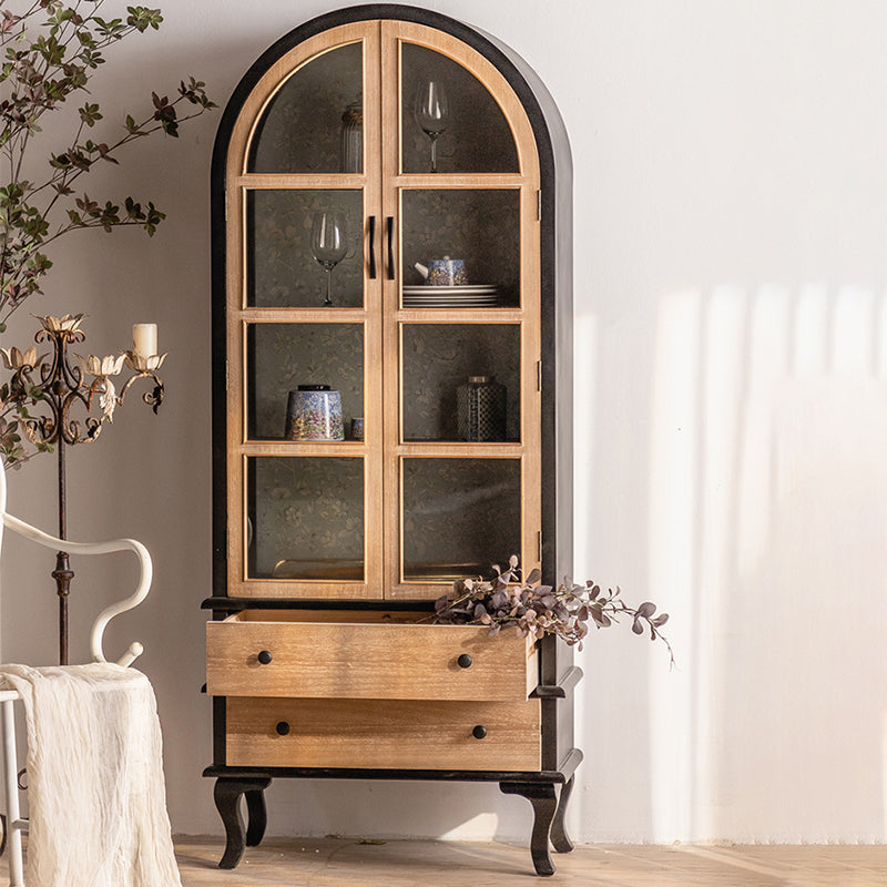 Glass Door Accent Cabinet Distressed Wood Industrial Storage Cabinet