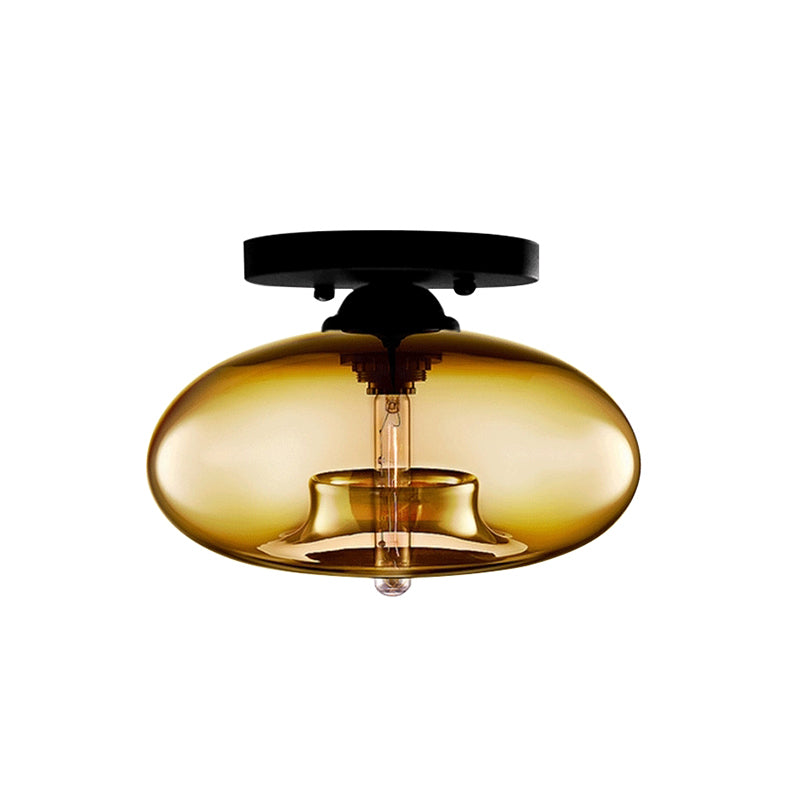 Glass Oval Flush Mount Lamp Simple Style 1 Light Clear/Amber/Smoky Ceiling Flush Mount for Hallway