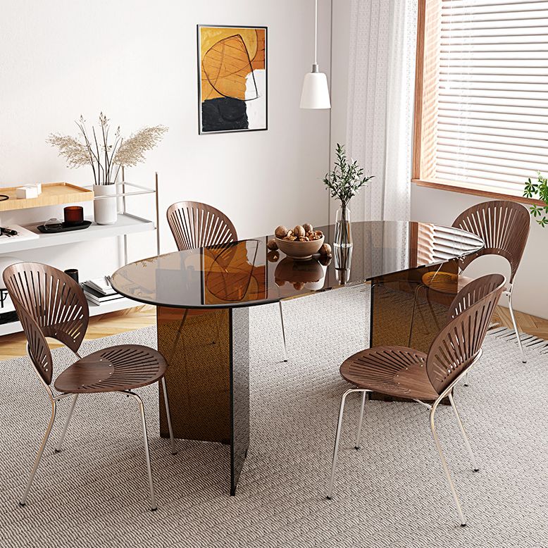 Glass Top Dining Table Oval Dining Table with Double Pedestal