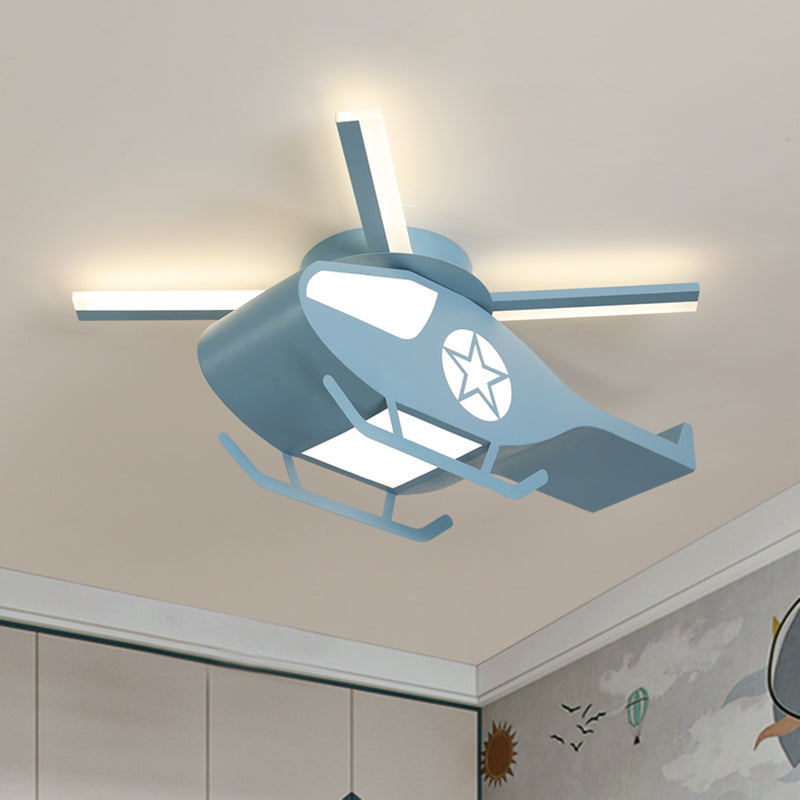 Helicopter Figure Flush Light Fixture Simple Metal Pink/Blue LED Flush Mount Lamp for Children Room