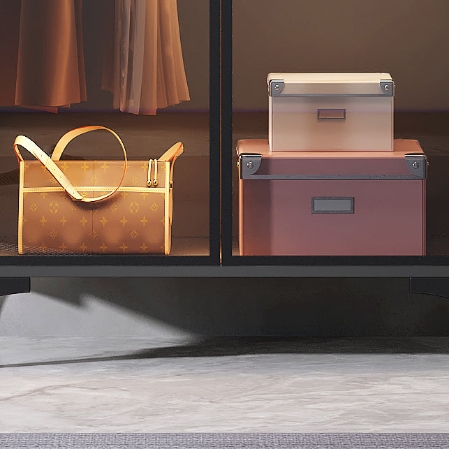 Hinged Wardrobe Armoire with Legs Wood and Glass Wardrobe Cabinet