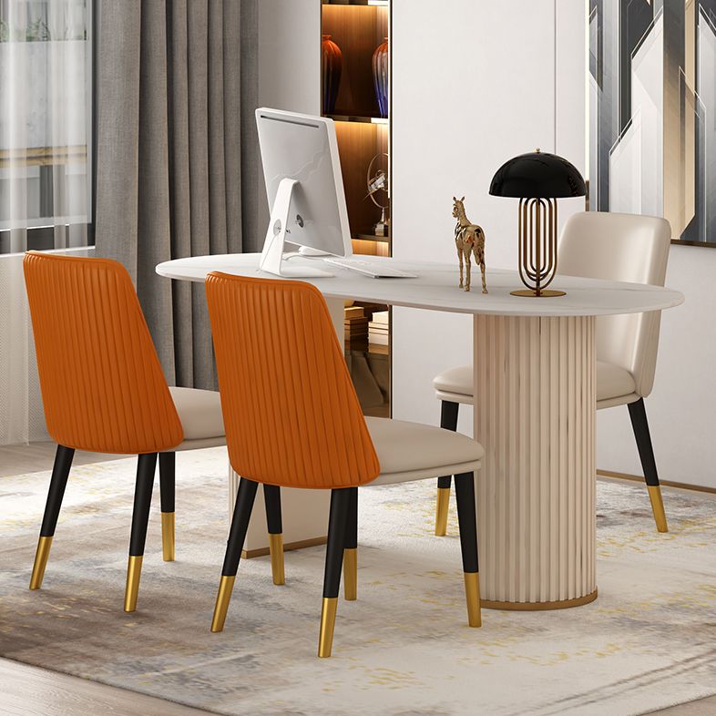 Home Office Luxury Work Desk Oval Shaped White Writing Table