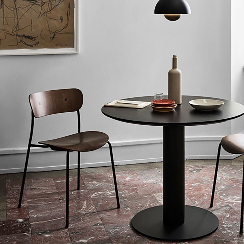 Industrial Armless Kitchen Chair Wooden Open Back Side Chair with Metal Base