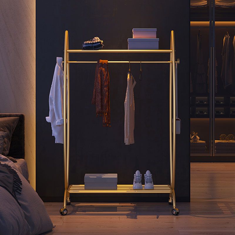 Industrial Style Coat Rack Pure Color Free Standing Metallic Coat Hanger with Shelves