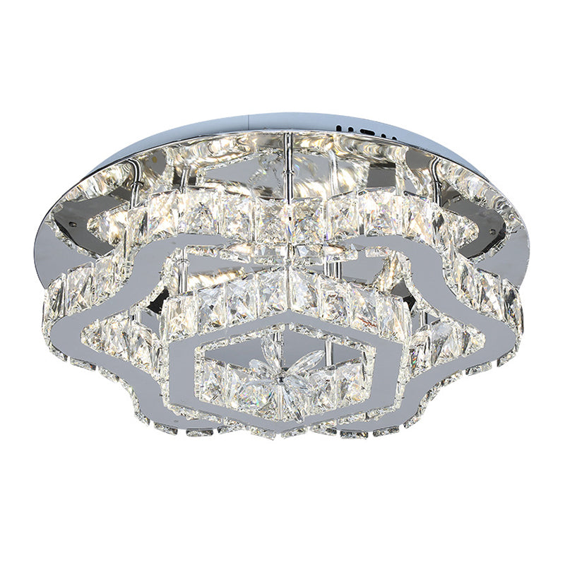 Inlaid Crystal LED Semi Flush Light Modernist Stainless Steel Flower Living Room Ceiling Flush Mount