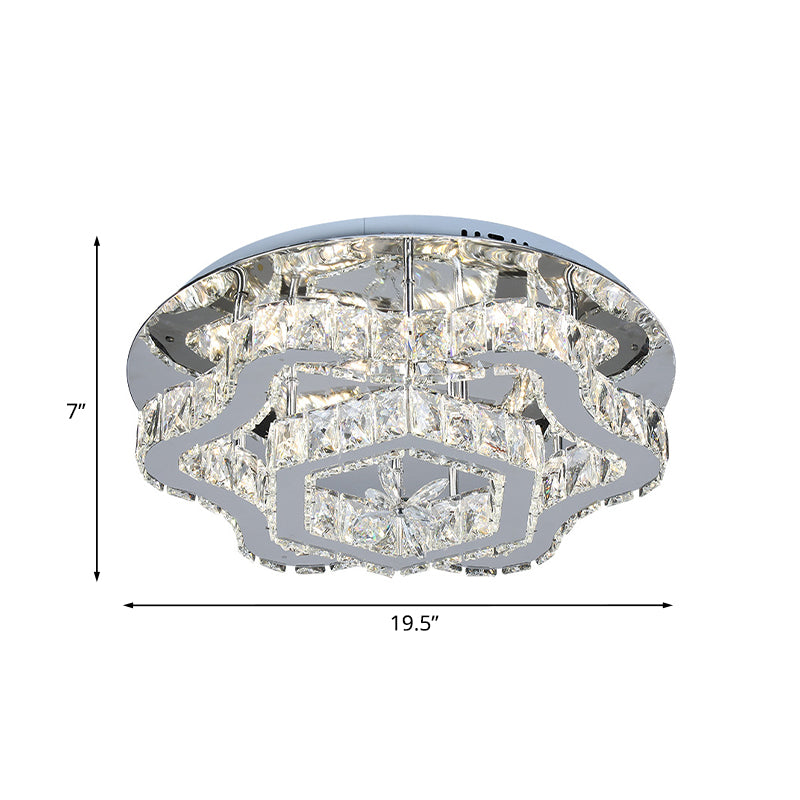 Inlaid Crystal LED Semi Flush Light Modernist Stainless Steel Flower Living Room Ceiling Flush Mount Clearhalo 'Ceiling Lights' 'Close To Ceiling Lights' 'Close to ceiling' 'Semi-flushmount' Lighting' 1194158