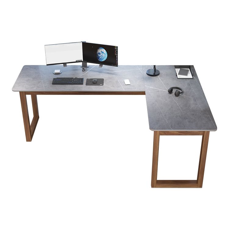 L-Shape Modern Style Office Desk Marble and Wood Writing Desk in Black