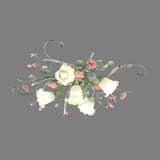 Metal Floral Ceiling Fixture Pastoral 4/5/9 Lights Living Room Semi Flush Mount Light in Blue Clearhalo 'Ceiling Lights' 'Close To Ceiling Lights' 'Close to ceiling' 'Semi-flushmount' Lighting' 465727