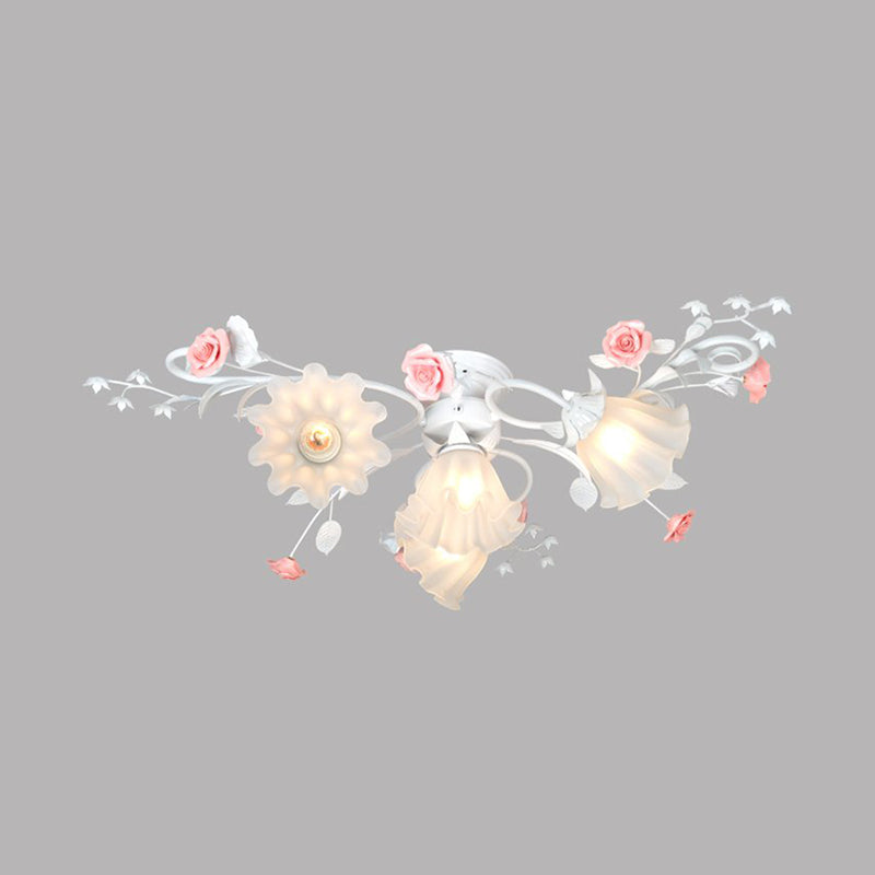 Metal White/Green Ceiling Fixture Scalloped 4 Bulbs Pastoral Flower Semi Flush Light for Bedroom Clearhalo 'Ceiling Lights' 'Close To Ceiling Lights' 'Close to ceiling' 'Semi-flushmount' Lighting' 415386