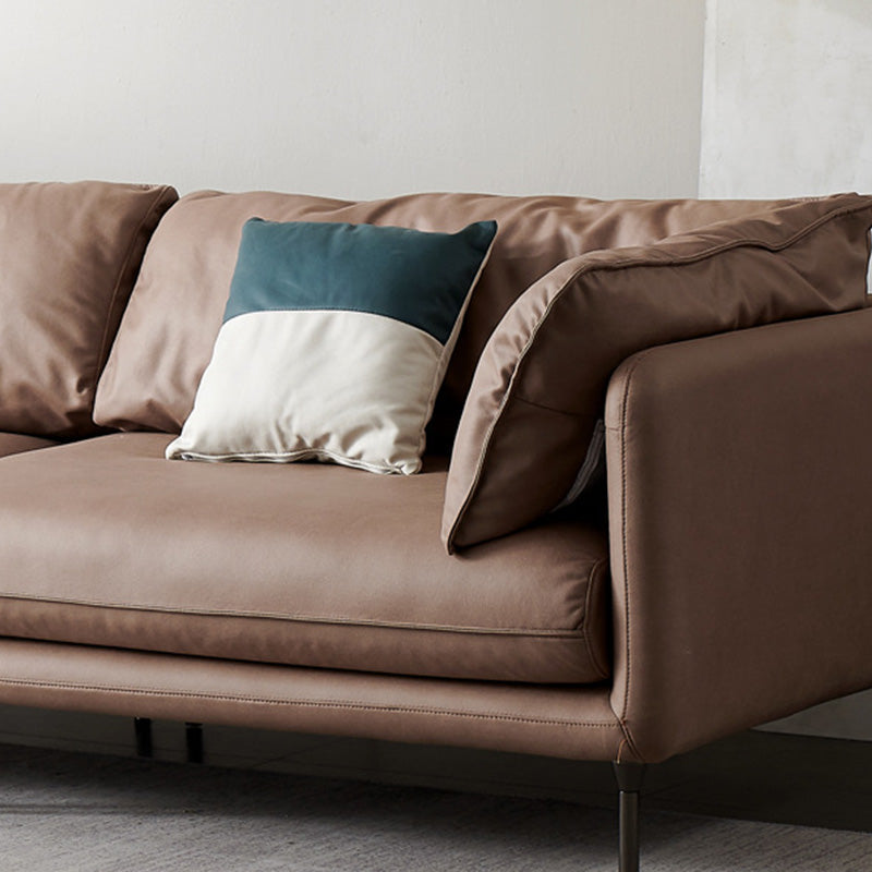 Mid-Century Modern Leather Sofa 32.28" Tall Tuxedo Arm Sofa with Pillows