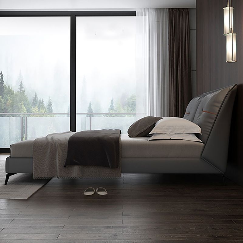 Mid-Century Modern Panel Bed Solid Color Standard Bed With Custom Gold Legs