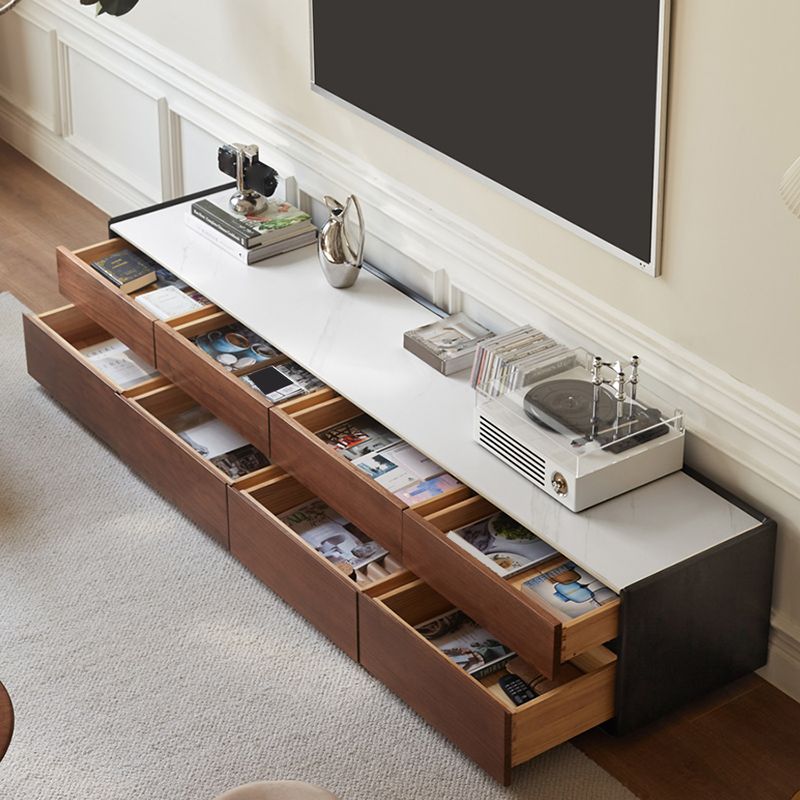 Mid-Century Modern TV Stand Console with Solid Wood Drawer for Living Room