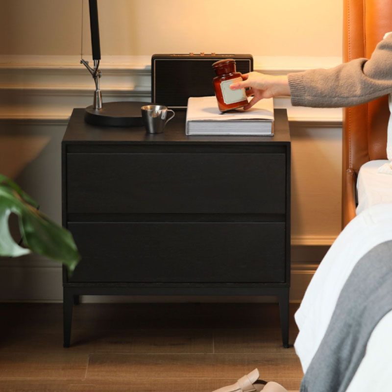 Mid Century Modern Wooden Nightstand with 2 Drawers for Bedroom