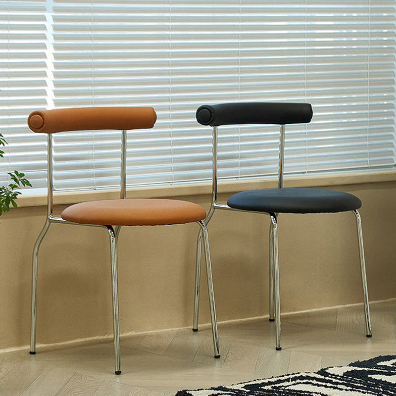 Modern Dining Room Open Back Faux Leather Silver Leg Dining Chair