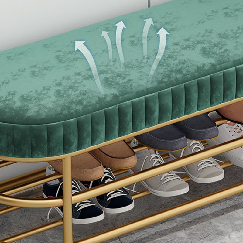 Modern Entryway Bench Cushioned Metal Seating Bench with Shelves , 12.5 inch W
