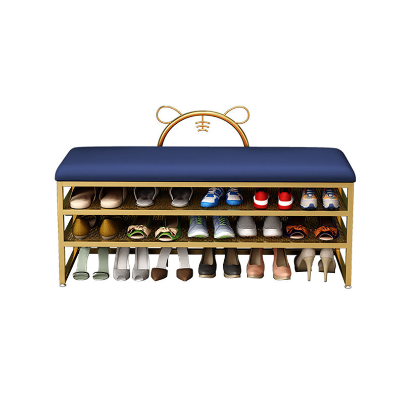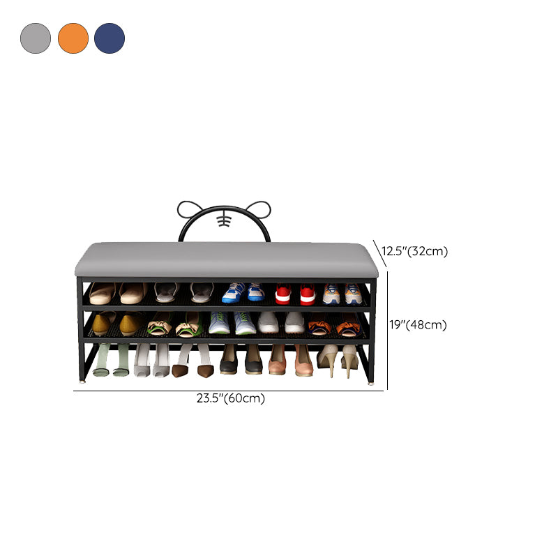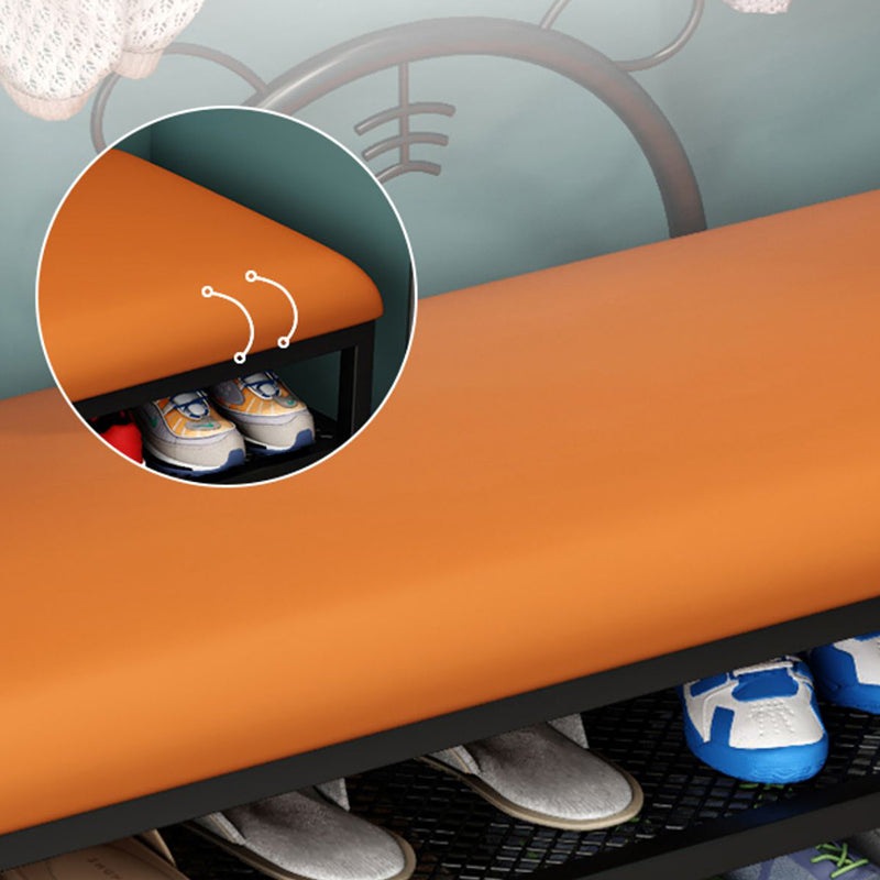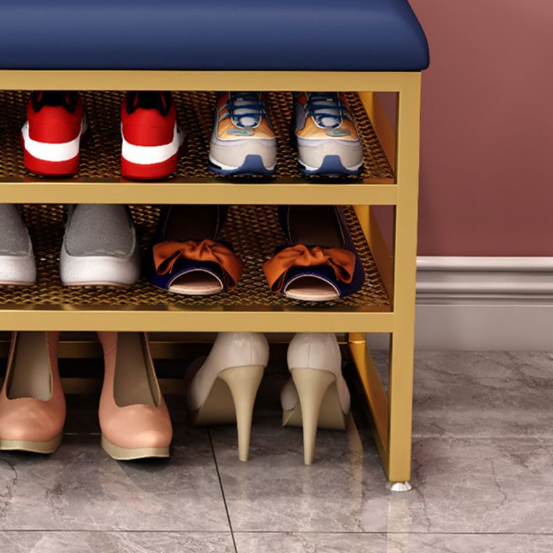 Modern Entryway Bench Cushioned Rectangle Metal Seating Bench with Shelves