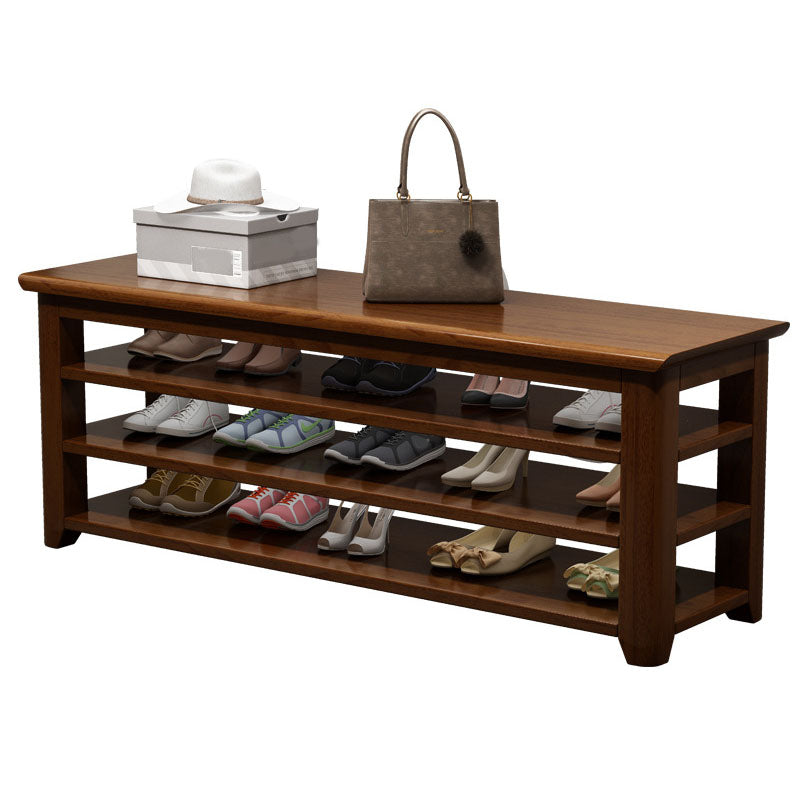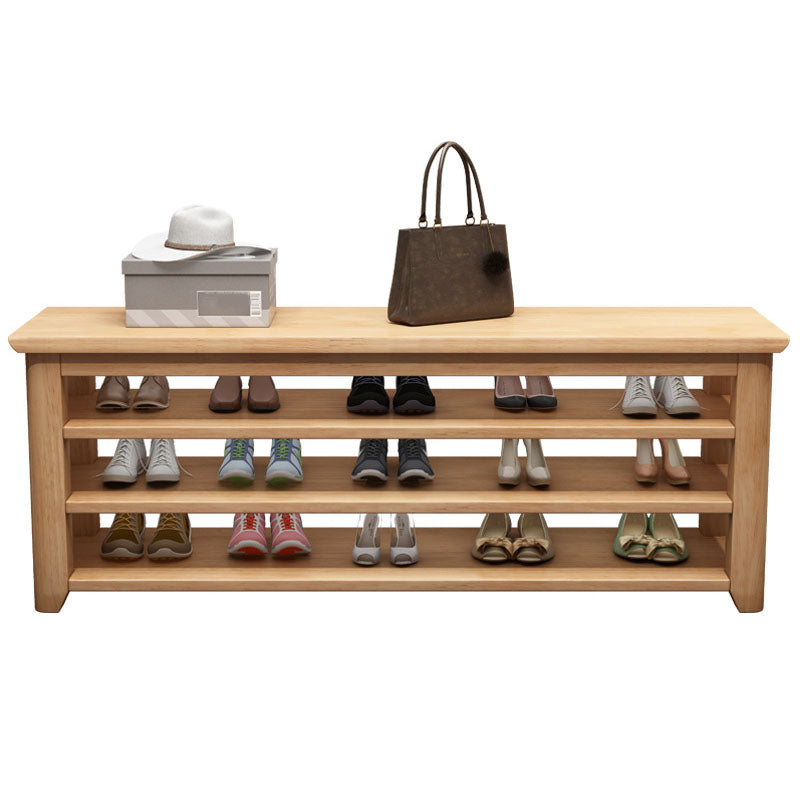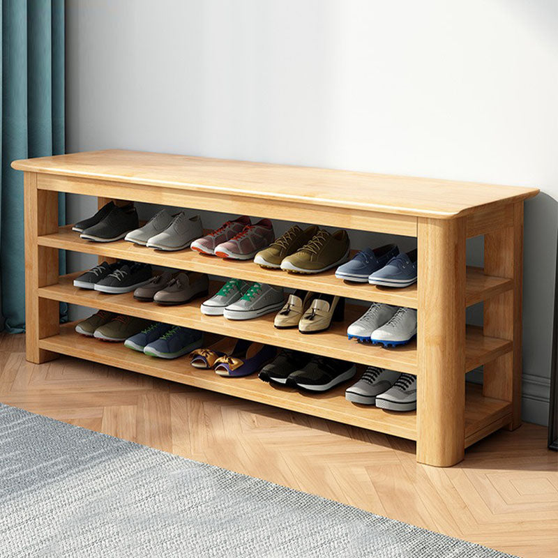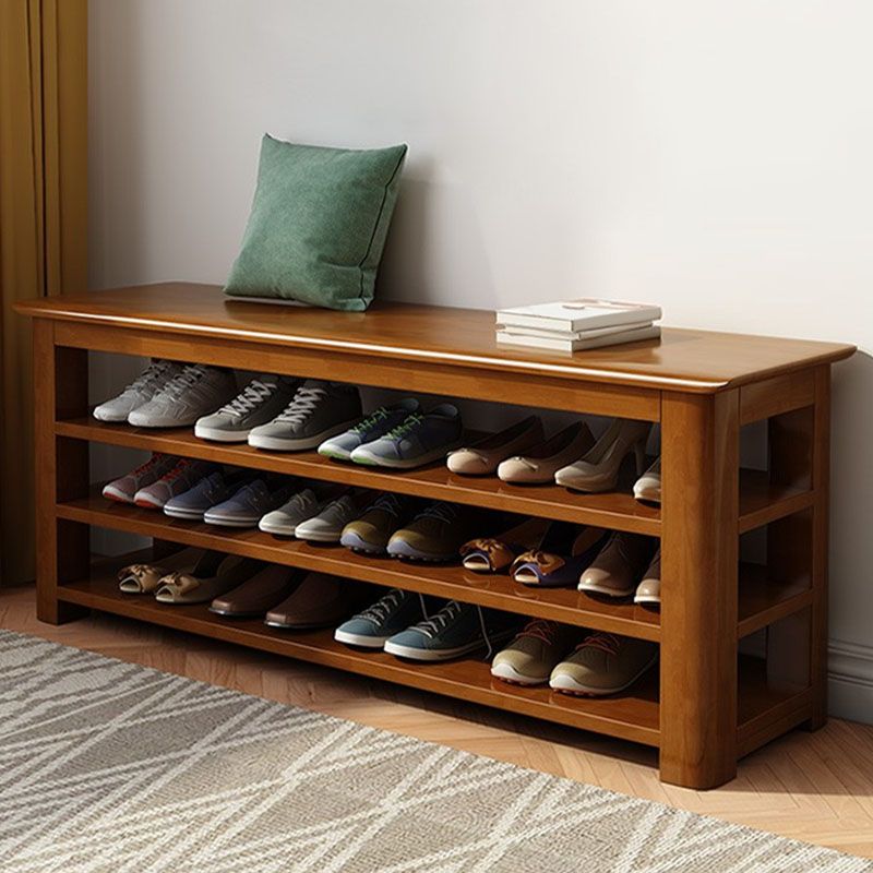 Modern Entryway Bench Cushioned Wooden Seating Bench with Shelves , 14" W