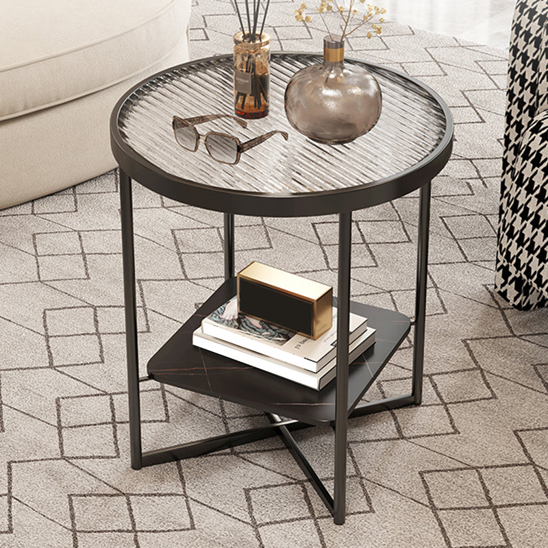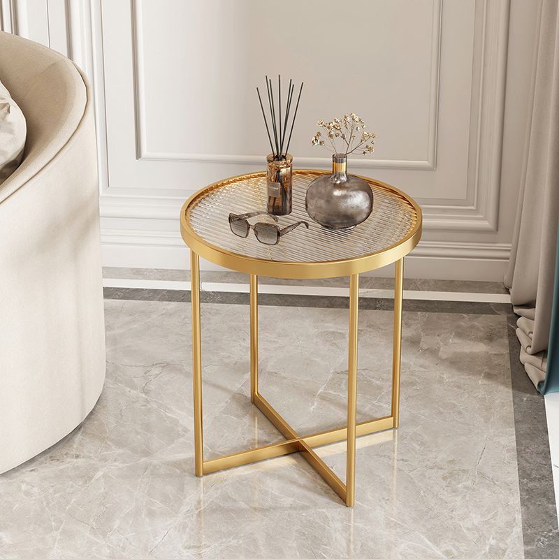 Modern Glass Side End Table Metal Cross Legs Round Corner Table