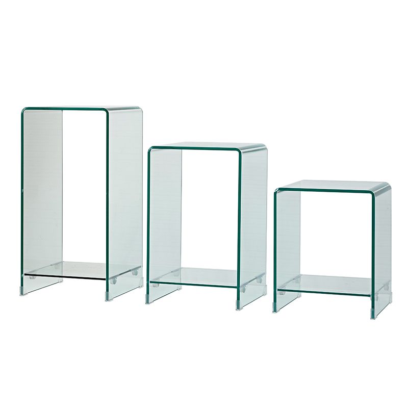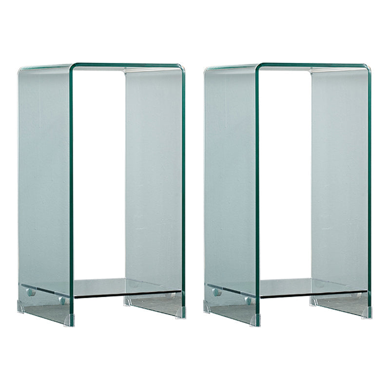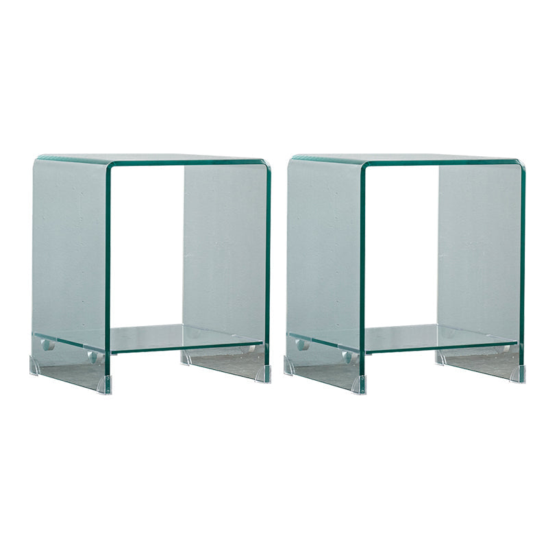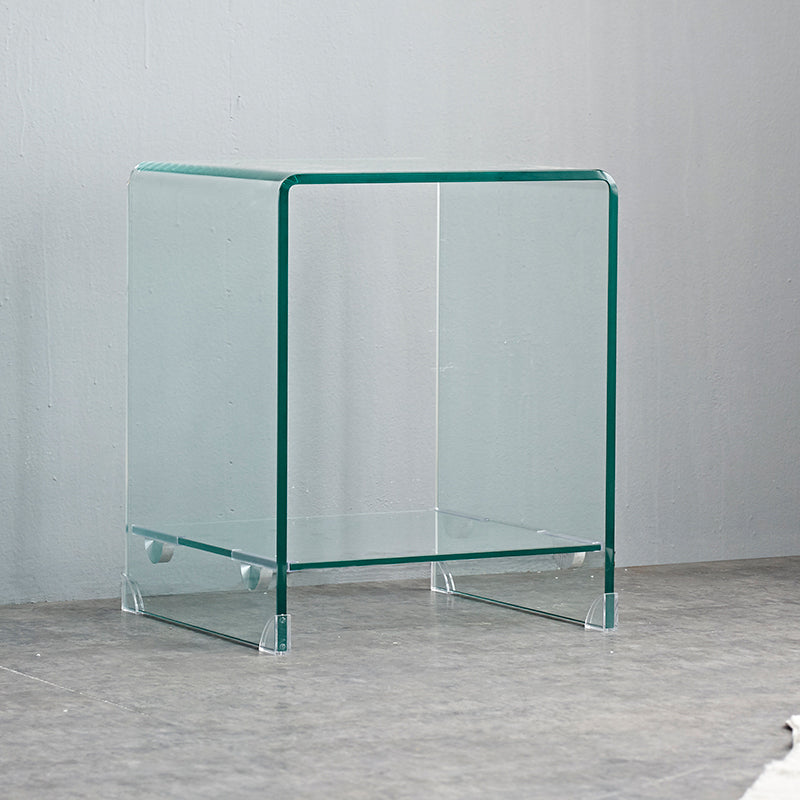 Modern Sled Corner Table Square Glass Side End Table for Living Room