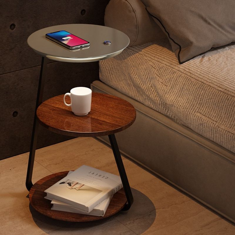 Modern Solid Wood Round 3-Tier Living Room Accent Side Table