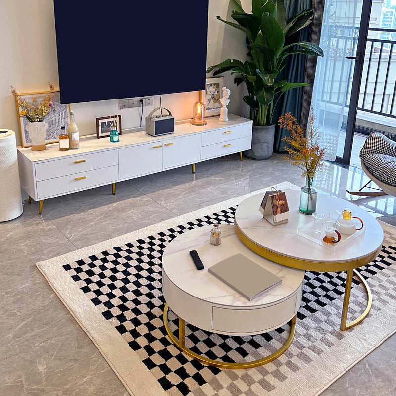 Modern Stone TV Media Console Enclosed Storage Stand Console