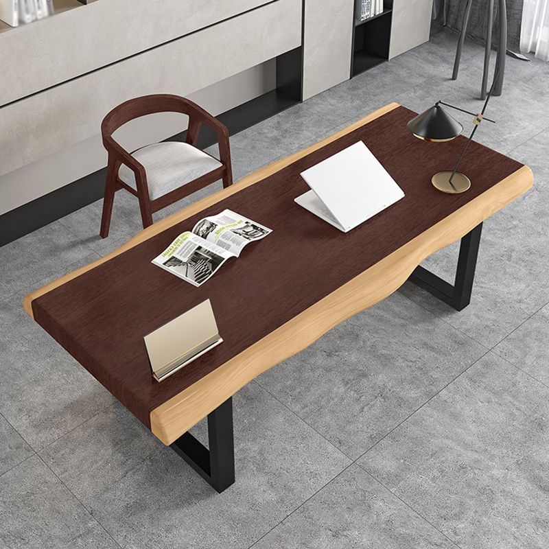 Modern Style Office Desk Solid Wood Writing Desk with Metal Base