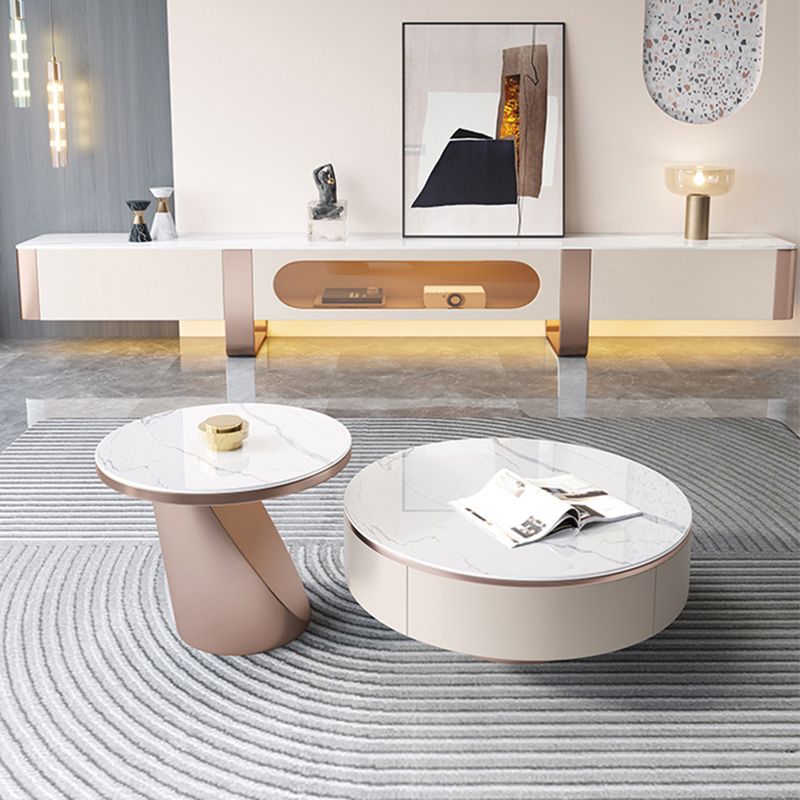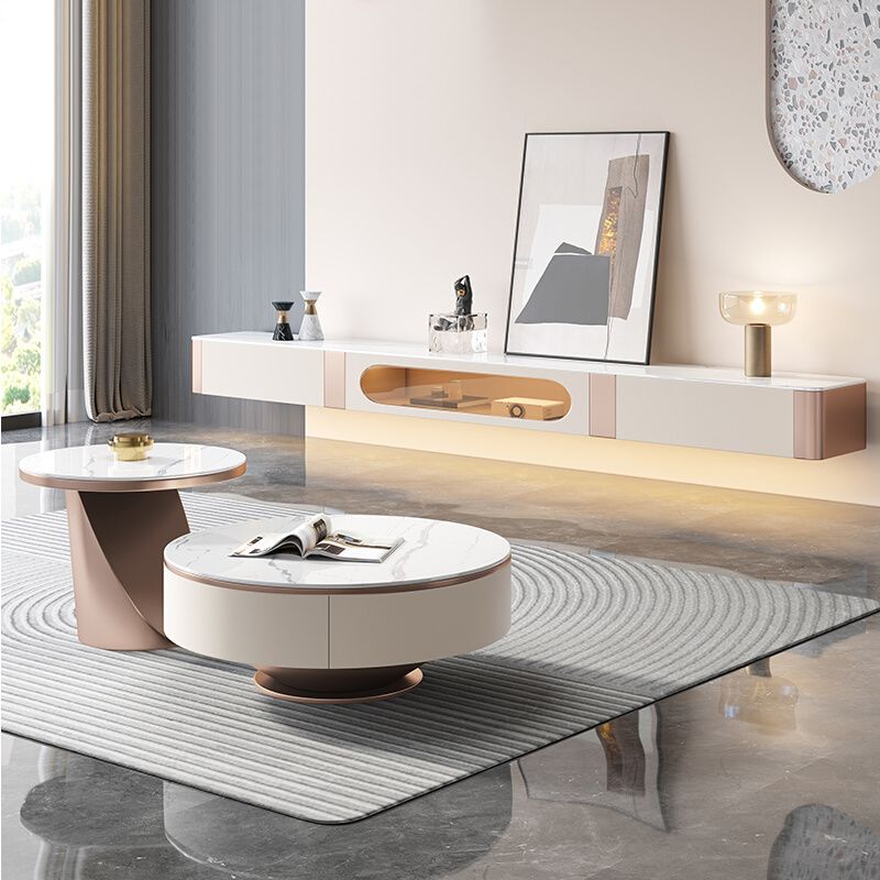 Modern Style Stone Top TV Cabinet Console White with 2 Drawers