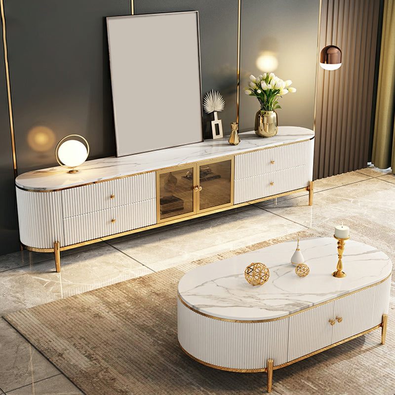Modern TV Media Console Stone TV Stand Console with 4 Drawers