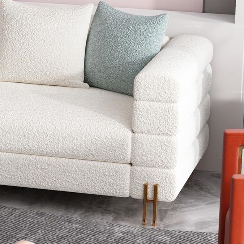 Modern White Wool Sofa with Tuxedo Arm and Tight Back for Apartment