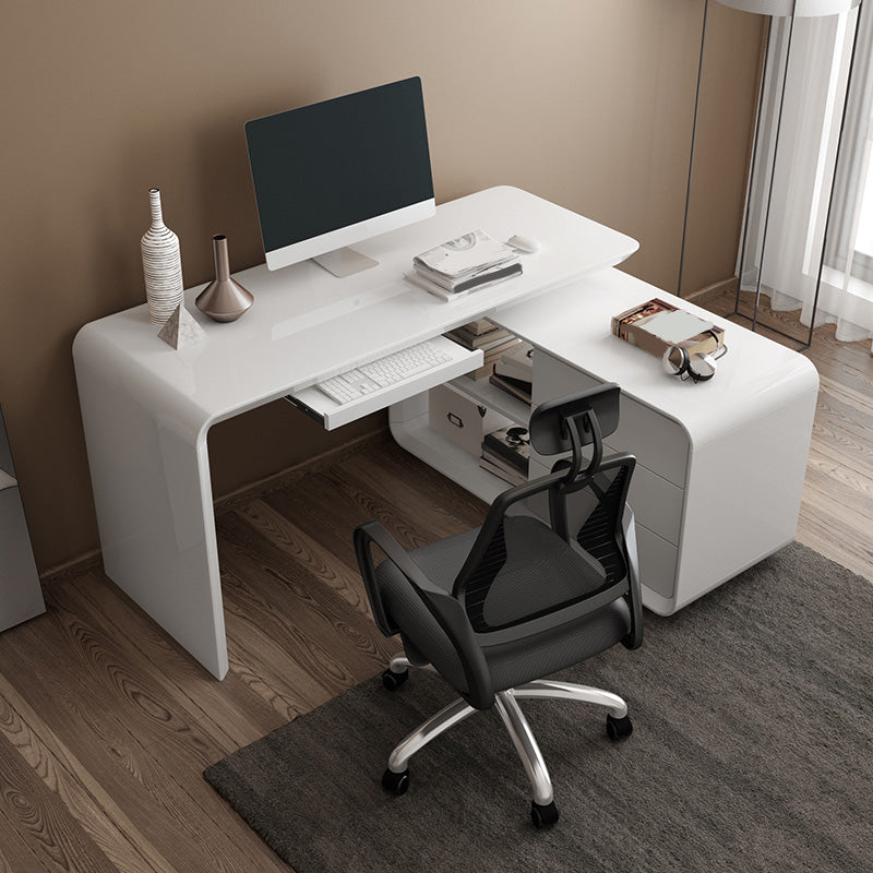 Modern Wood Computer Desk White Pedestal Writing Desk for Home
