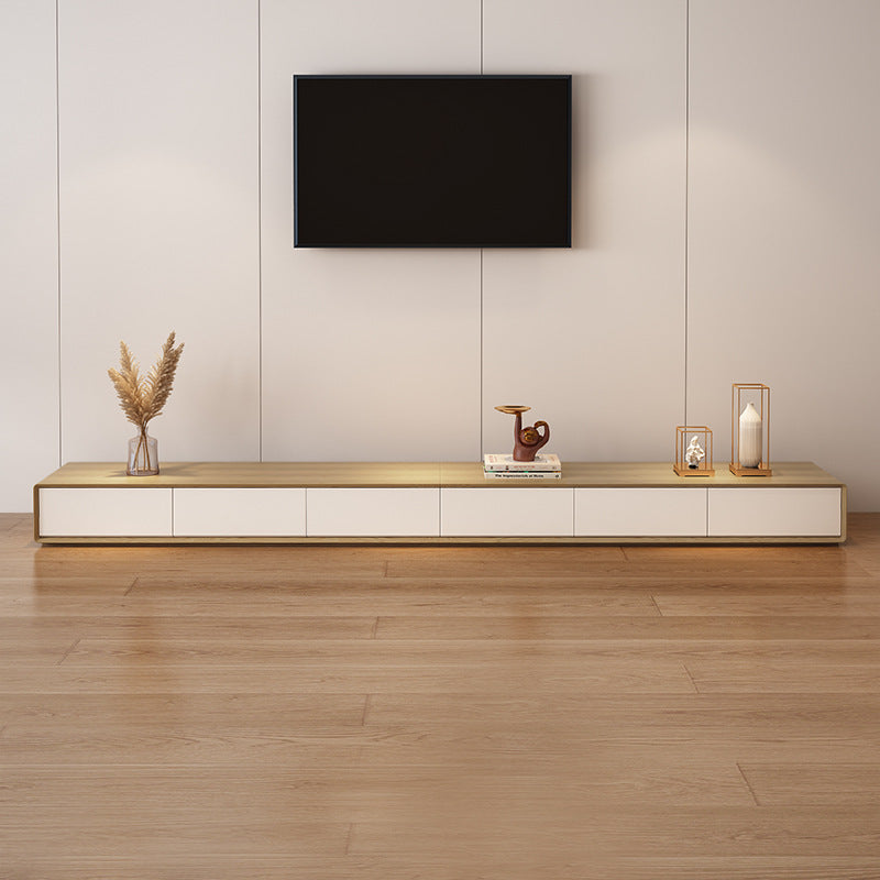 Natural and White Wood Media Console with Drawers Contemporary Faux Wood TV Media Stand
