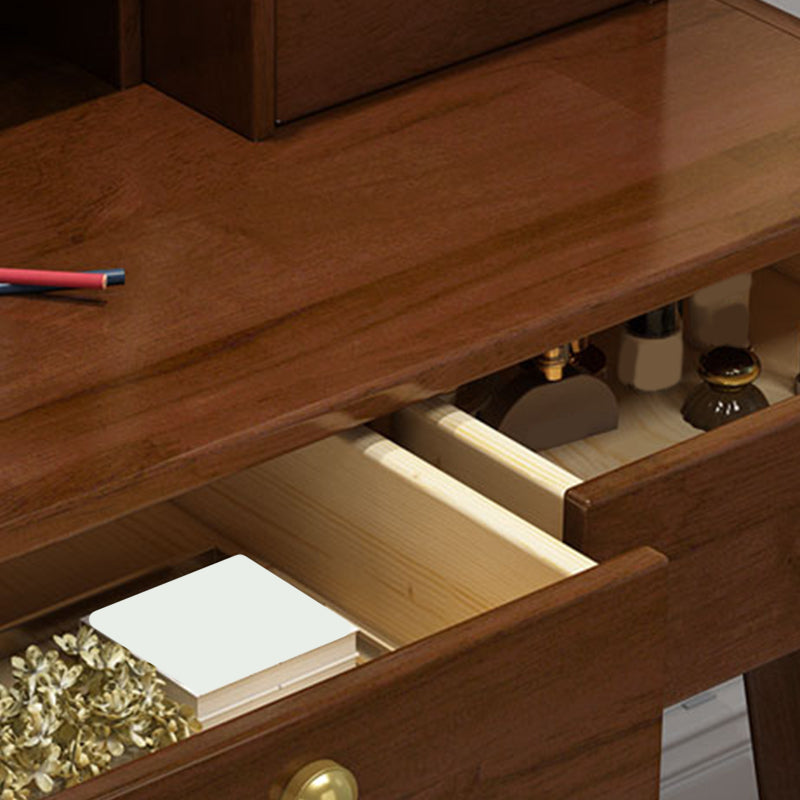 Natural/Brown Wooden Vanity with Mirror, 2 Drawers Dresser - 27.56"/31.5" W