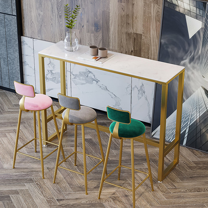 Nordic Backrest Armless Counter Stool Iron Cafe Bar Stool with Velvet Cushion and Pedal