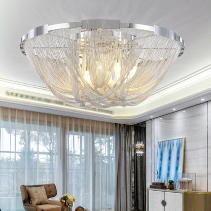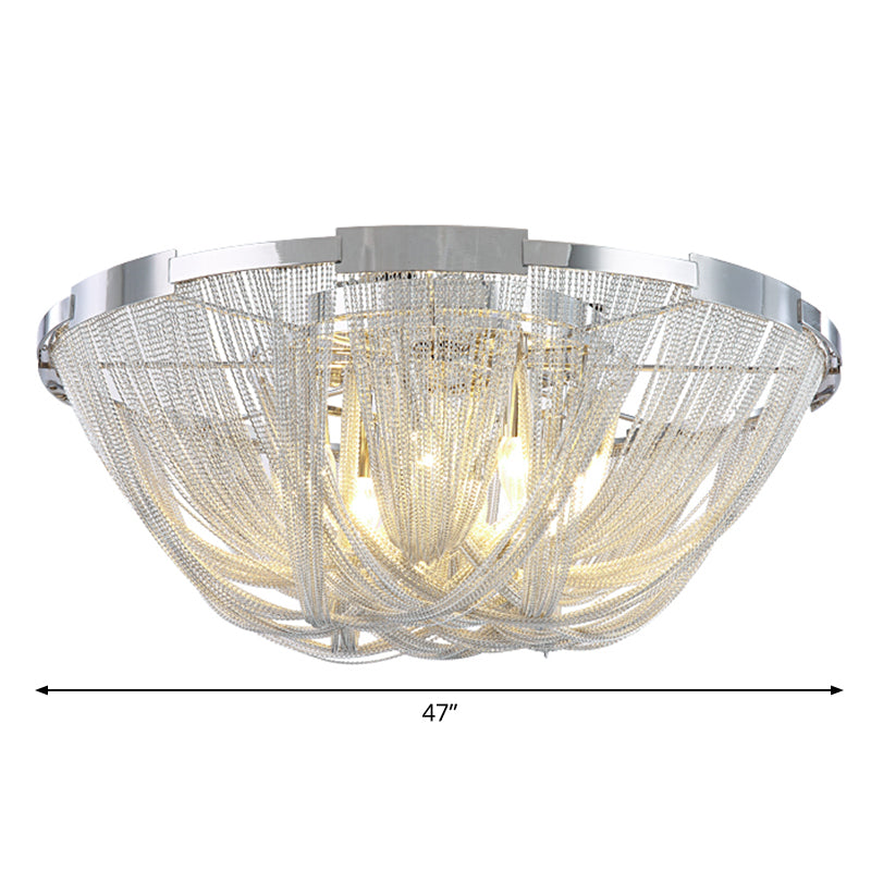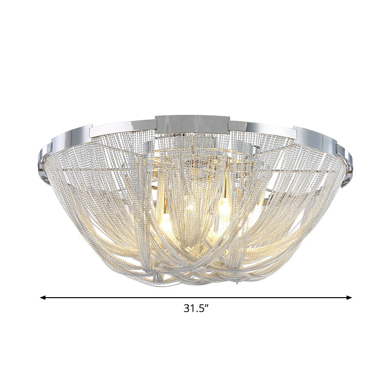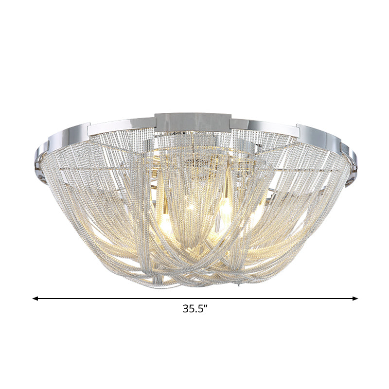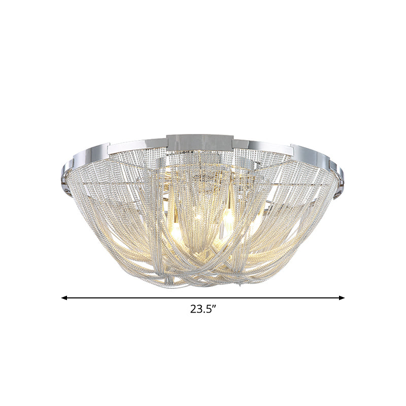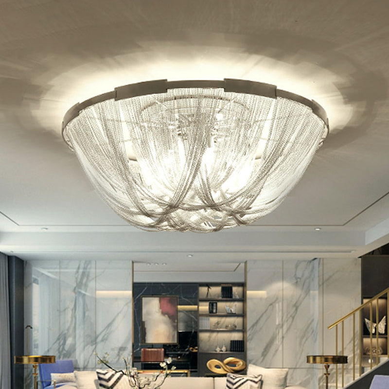 Nordic Bowl Flush Mount Aluminum Living Room Ceiling Light Fixture in Silver