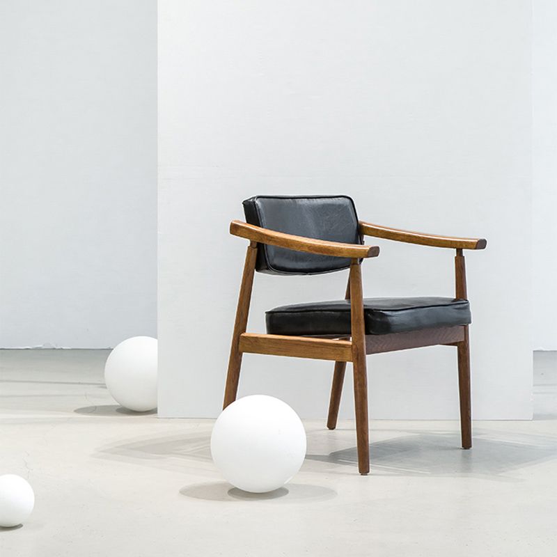 Oak Wood Modern Dining Chair for Home Faux Leather Open Back Side Chair