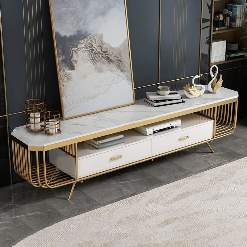 Open Storage TV Media Console Stone TV Console with 2 Drawers