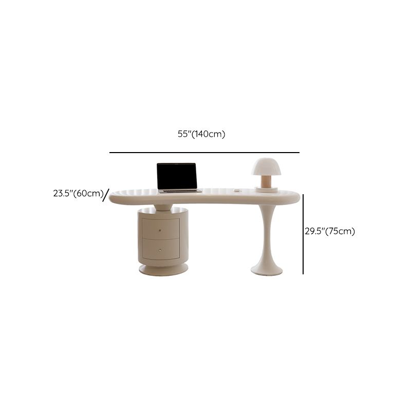 Oval Shaped Wood Office Desk in White Writing Desk with 2-Drawer