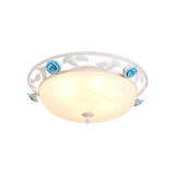 Pastoral Dome Ceiling Light Fixture 1 Bulb Metal Flush Mount Lighting in White for Living Room