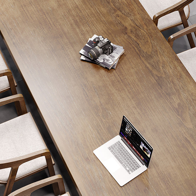 Pine Wood Top Rectangular Office Desk Industrial Desk with Black Metal Base