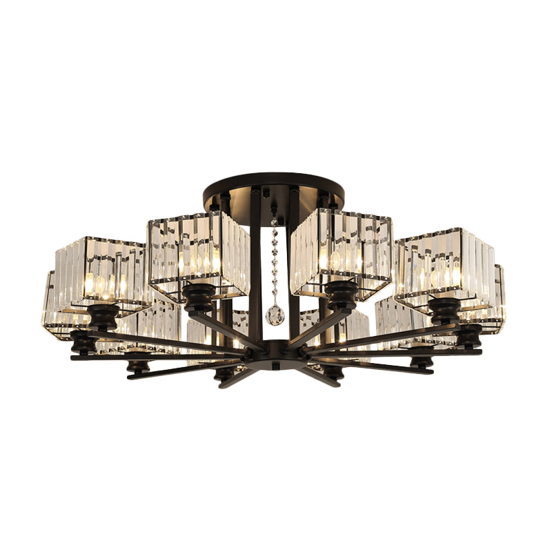 Prismatic Crystal Rectangle Flush Chandelier Modern 4/6/8 Lights Living Room Semi Flush Ceiling Lamp in Black/Gold