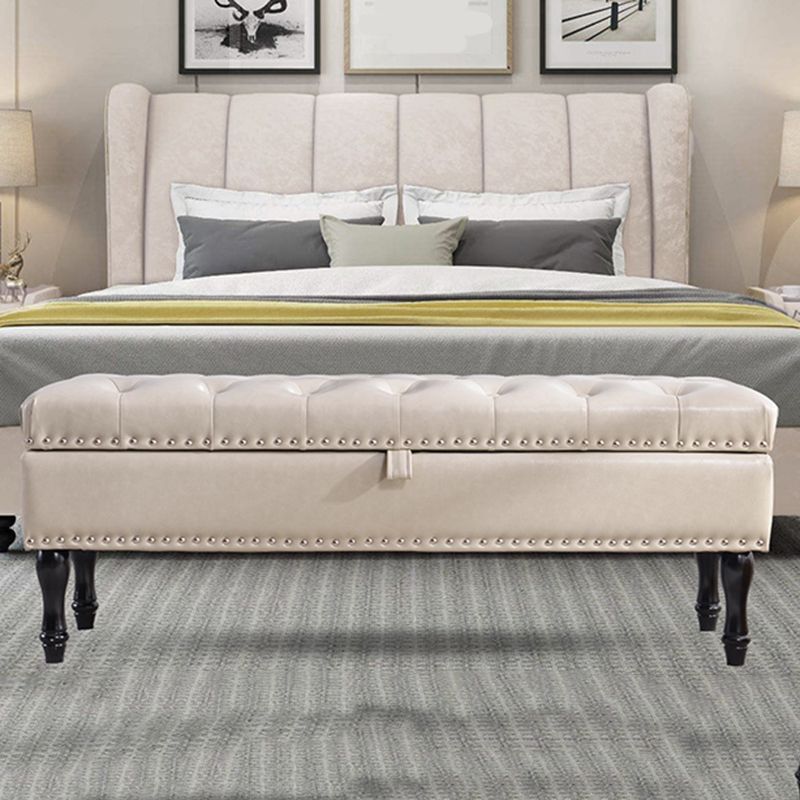 Rectangle Upholstered Bedroom Bench Modern Seating Bench with Wooden Base