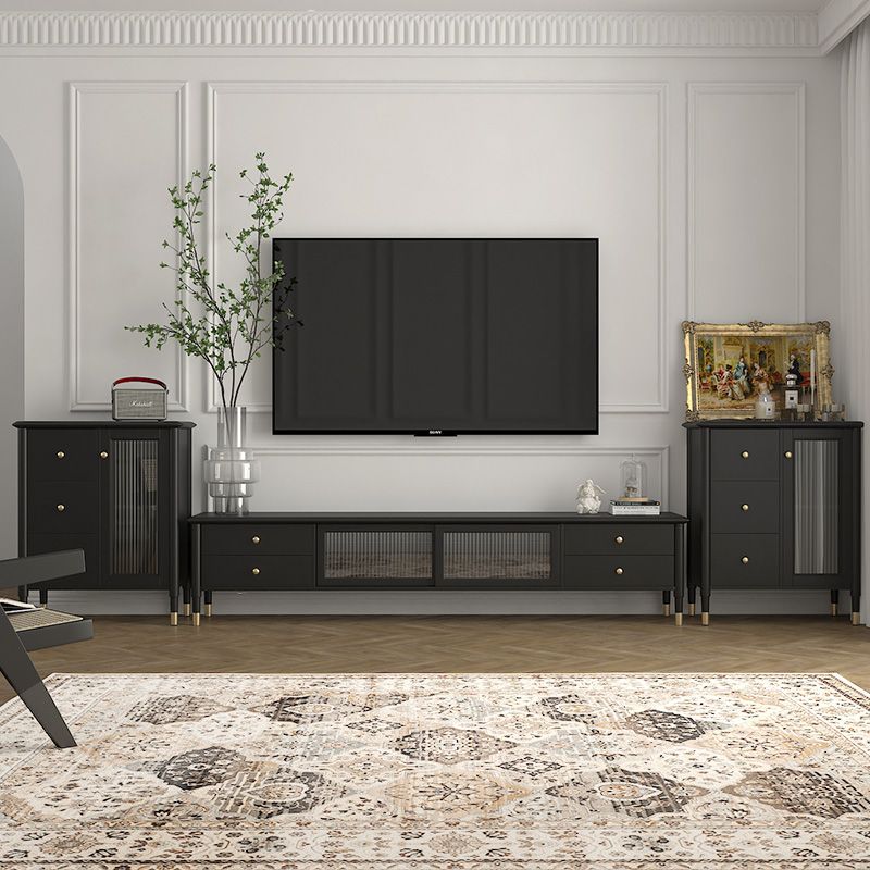 Rubberwood Modern TV Stand Wooden TV Console with Drawers and Legs