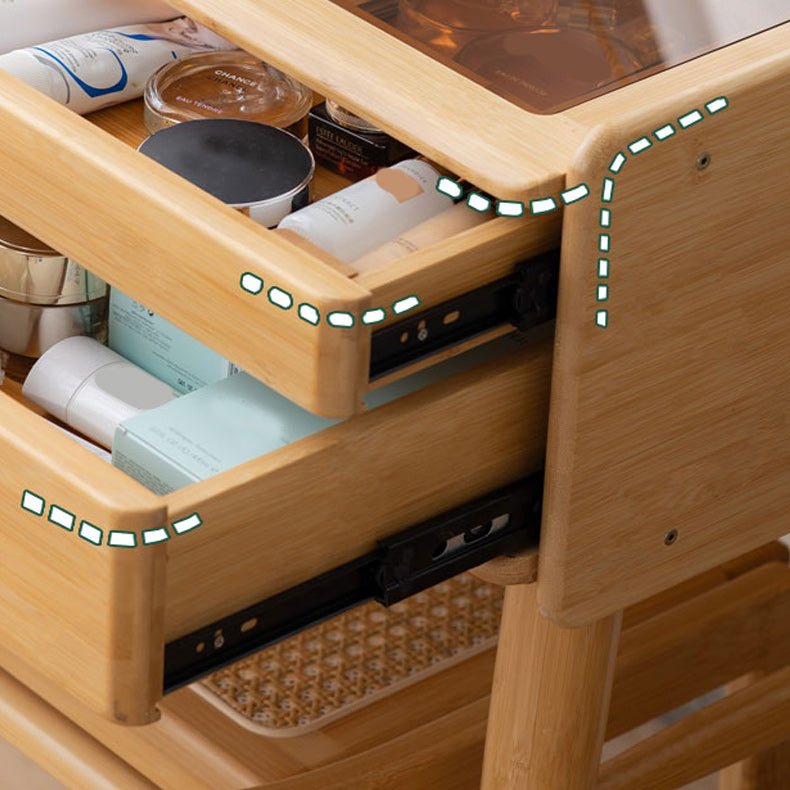 Scandinavian Natural Bedroom Solid Wood Mirror With Drawer Makeup Vanity Set
