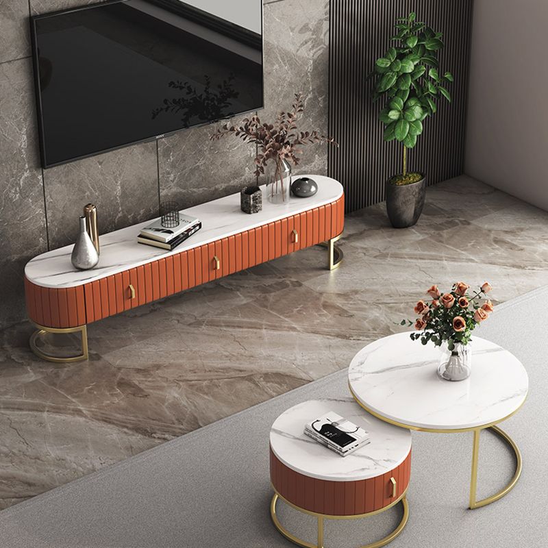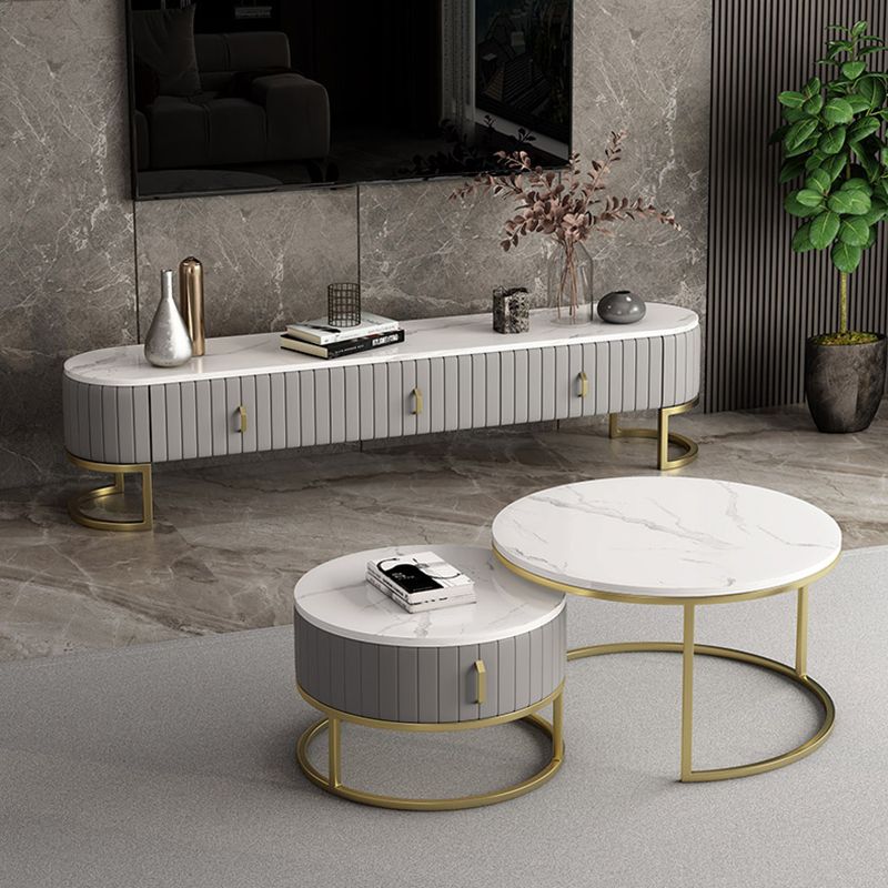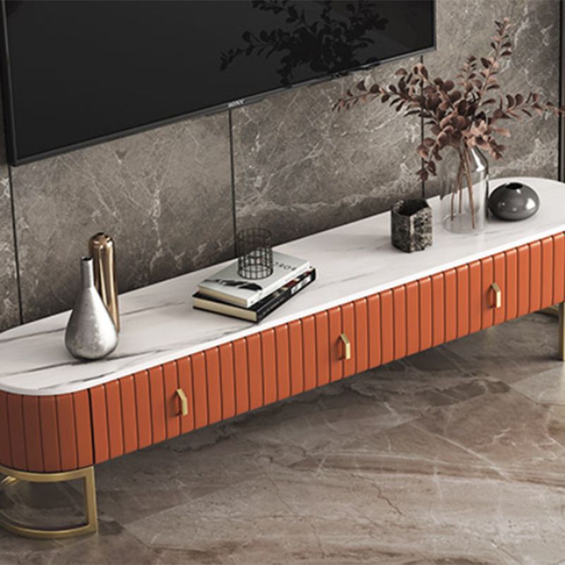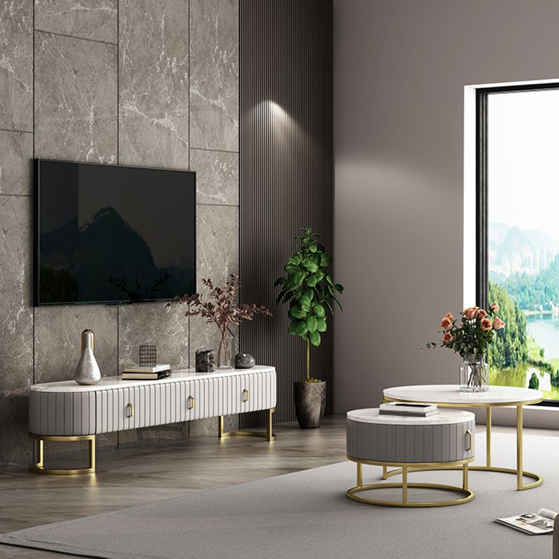 Scandinavian Stone TV Stand Enclosed Storage Stand Console with 3 Drawers